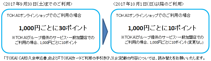 2017年10月1日ご利用分より、「1,000円ごとに30ポイント」から「1,000円ごとに10ポイント」に